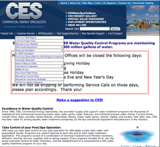As always, if you want us to add any features to this customer service section, please call (800) 940-1557 ext 152, or email a request using the newly established CES suggestion box at: