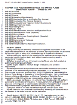 The Florida DOH is currently accepting comments and suggestions for changes to the 64E-9 code that governs Florida pools, spas, features, and bathing places.