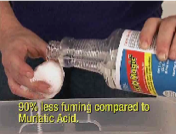 The Egg demonstration shows some of the benefits of the acid magic Muriatic acid replacement. Not only is the gentleman pouring acid directly on his hands with no ill effects, but the full strength Acid Magic is dissolving the outer egg shell while leaving the inner egg (protein) membrane intact. See the video on CESWaterQuality.com